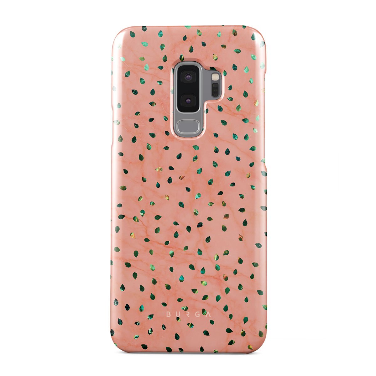 The Watermelon Shake Samsung Galaxy S9 Plus phone case offers a playful take on design merging. The watermelon seed-like specks showcase striking tropical design fragments that add a splash of color to the fresh and breezy coral pink marble. This way, the funny protective phone cover becomes a perfect statement piece for your summer outfits.