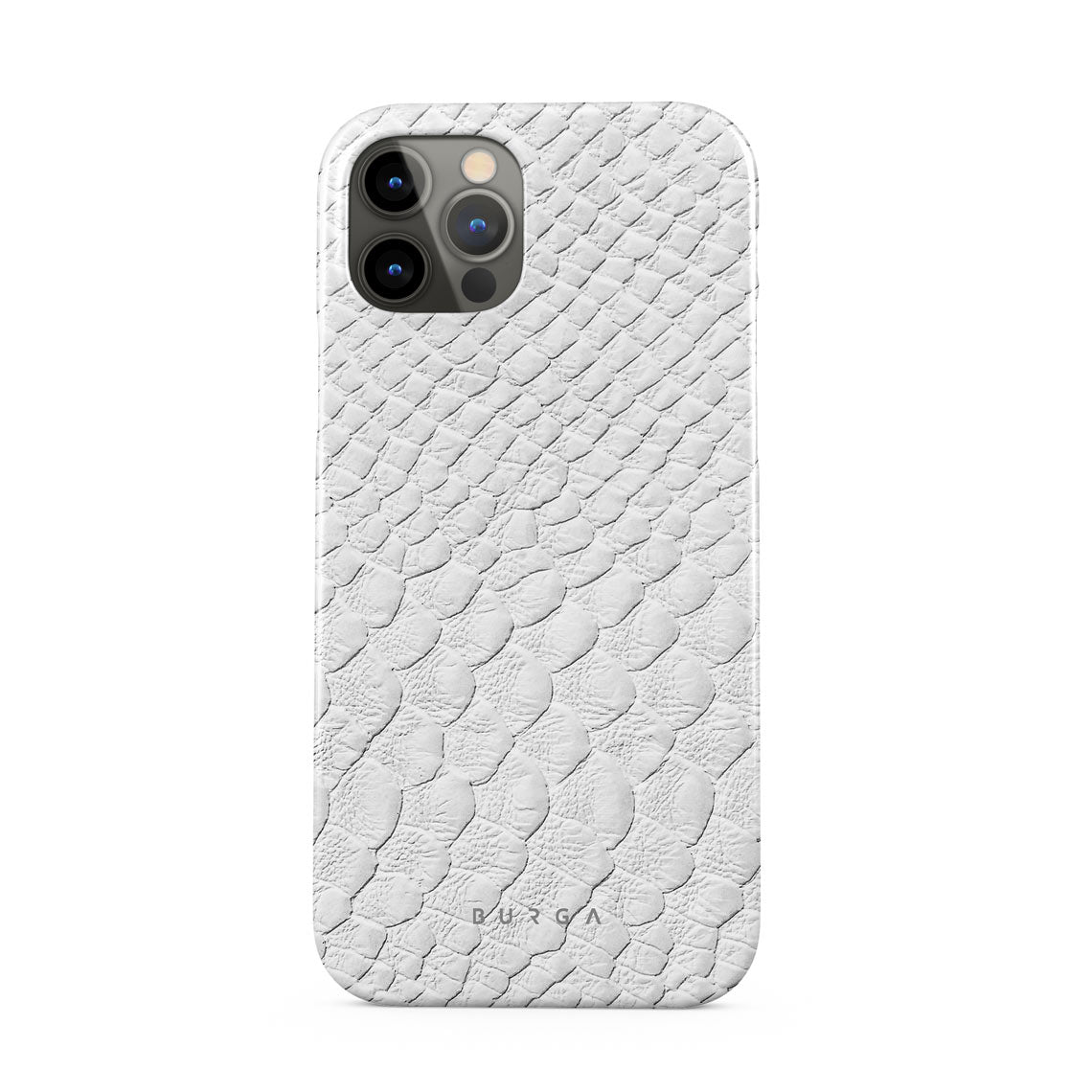 Glacial Desert iPhone 12 Pro Max phone case features snakeskin design in glacial white color. The dangerous animal print will add confidence and a touch of luxury to your style while transforming your phone into a fashion accessory.