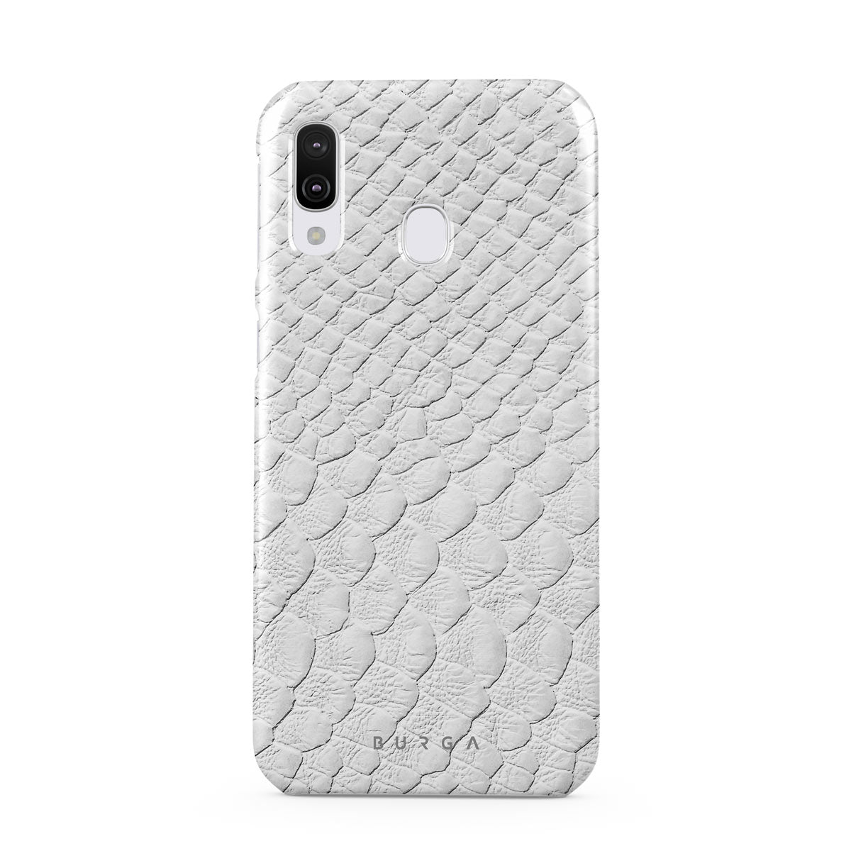 Glacial Desert Samsung Galaxy A40 phone case features snakeskin design in glacial white color. The dangerous animal print will add confidence and a touch of luxury to your style while transforming your phone into a fashion accessory.