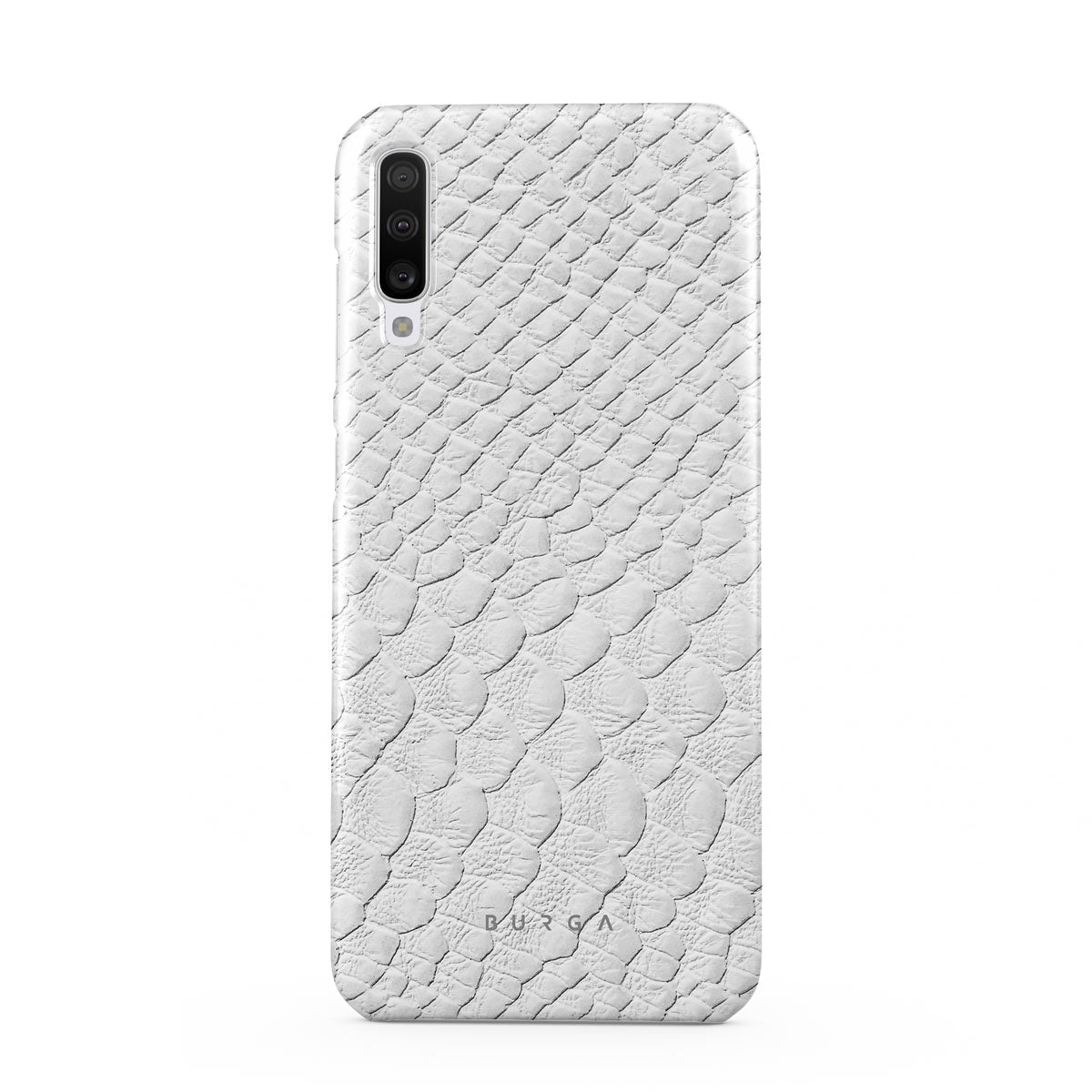 Glacial Desert Samsung Galaxy A70 phone case features snakeskin design in glacial white color. The dangerous animal print will add confidence and a touch of luxury to your style while transforming your phone into a fashion accessory.