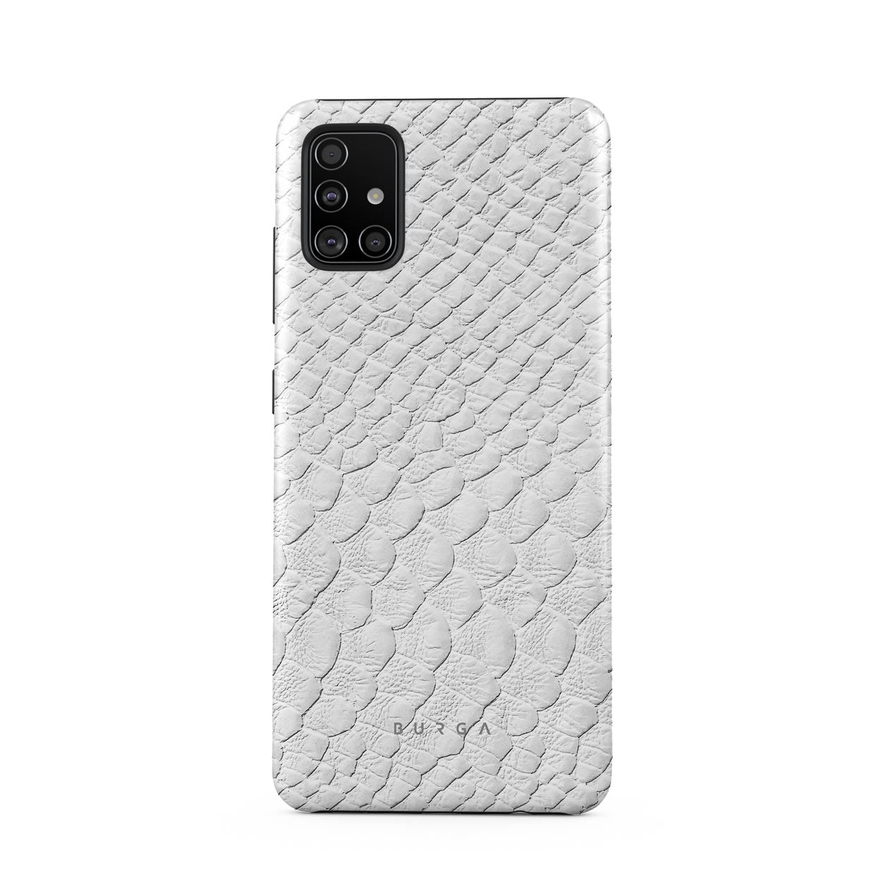 Glacial Desert Samsung Galaxy A71 phone case features snakeskin design in glacial white color. The dangerous animal print will add confidence and a touch of luxury to your style while transforming your phone into a fashion accessory.
