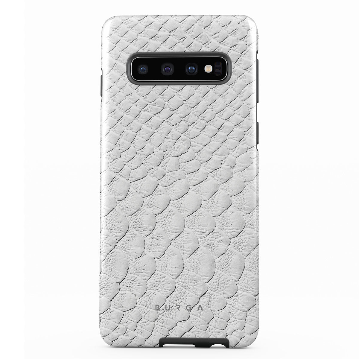 Glacial Desert Samsung Galaxy S10 phone case features snakeskin design in glacial white color. The dangerous animal print will add confidence and a touch of luxury to your style while transforming your phone into a fashion accessory.