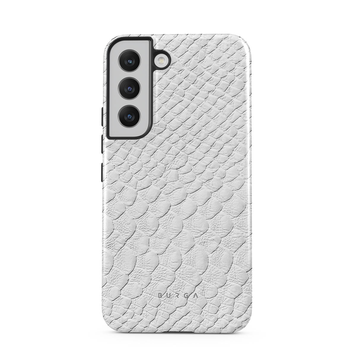 Glacial Desert Samsung Galaxy S22 phone case features snakeskin design in glacial white color. The dangerous animal print will add confidence and a touch of luxury to your style while transforming your phone into a fashion accessory.