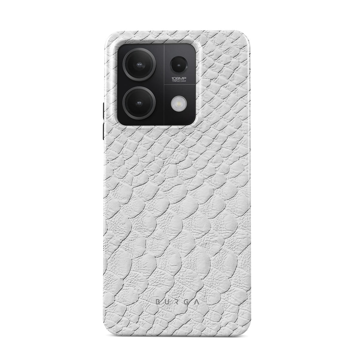 Glacial Desert Xiaomi Redmi Note 13 5G phone case features snakeskin design in glacial white color. The dangerous animal print will add confidence and a touch of luxury to your style while transforming your phone into a fashion accessory.