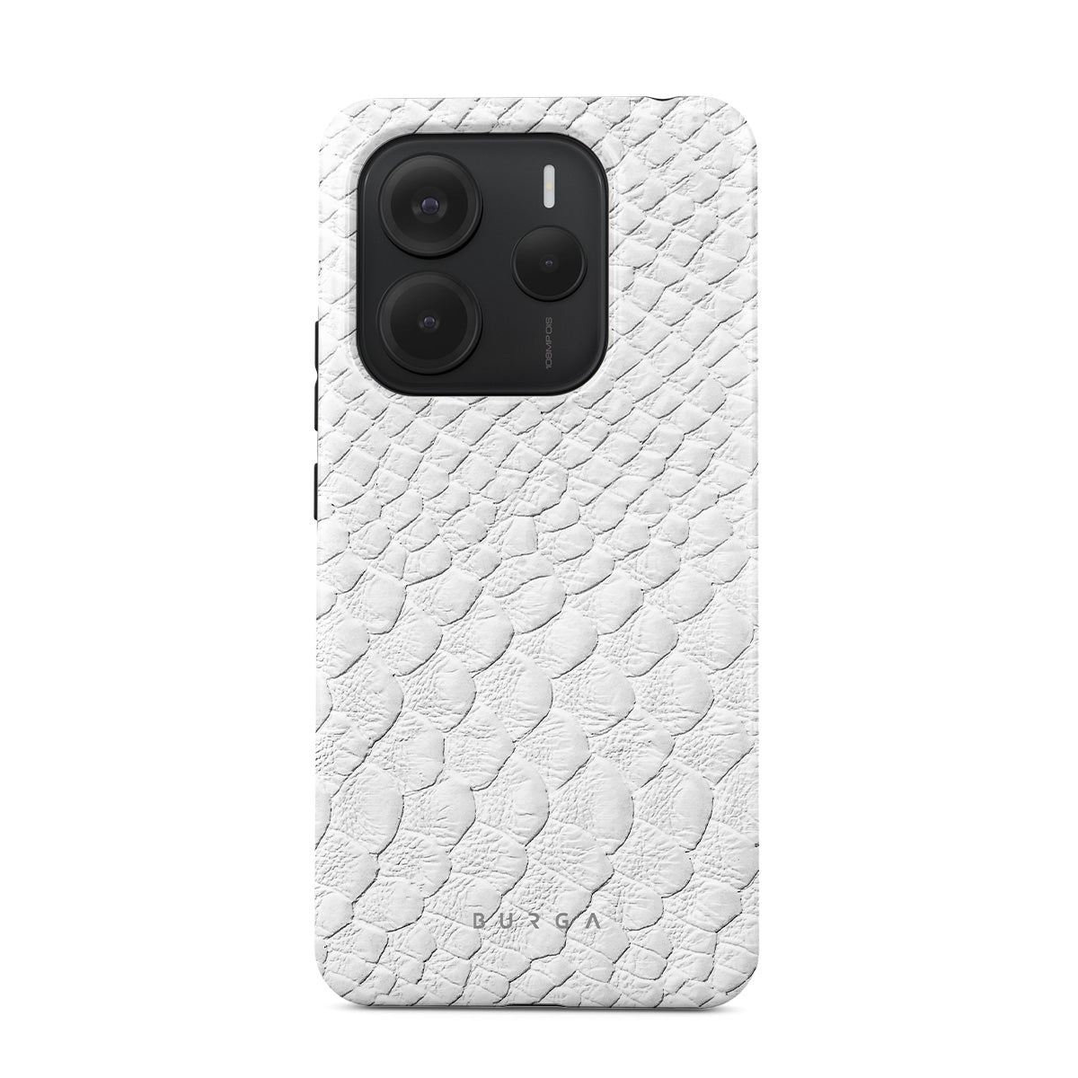 Glacial Desert Xiaomi Redmi Note 14 5G phone case features snakeskin design in glacial white color. The dangerous animal print will add confidence and a touch of luxury to your style while transforming your phone into a fashion accessory.