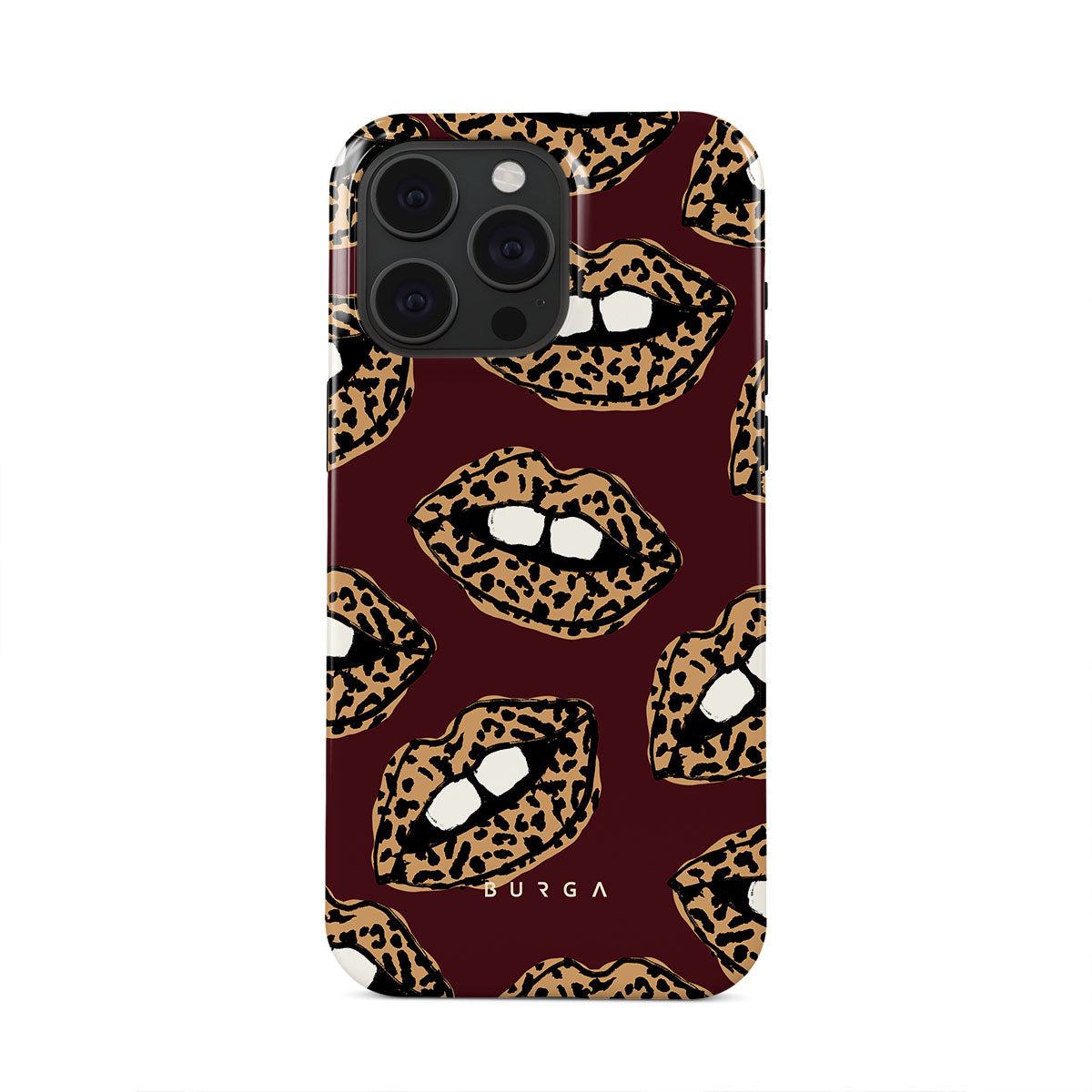 This design features: leopard print, lips, open lips, colored lips