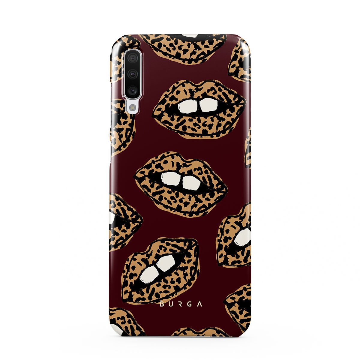 This design features: leopard print, lips, open lips, colored lips