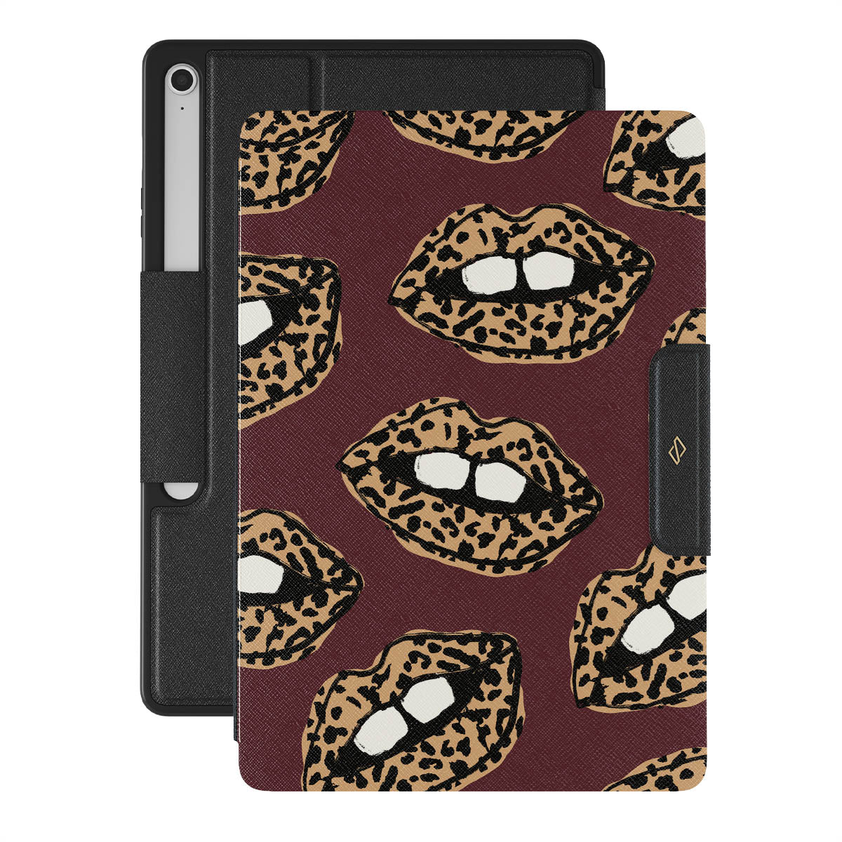 This design features: leopard print, lips, open lips, colored lips