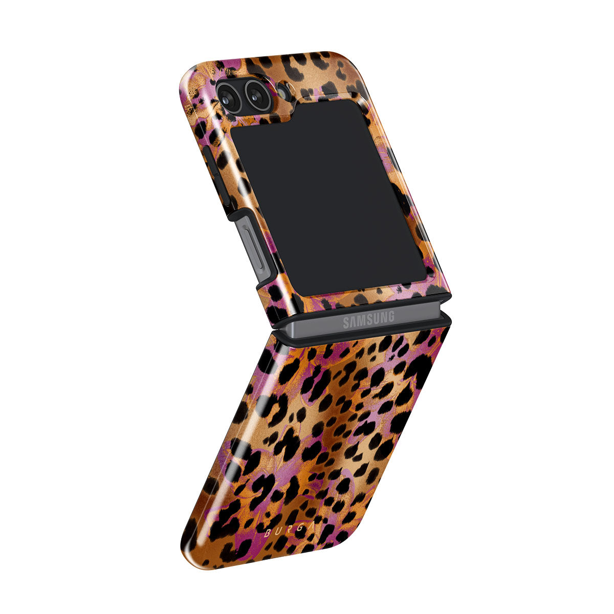 Leopard print dipped in purple mood swings. This Samsung Galaxy Z Flip 5 phone case design is the queen of chaos.