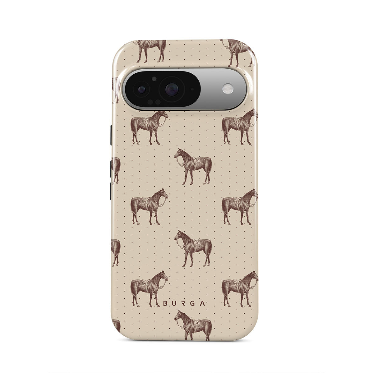 Life might feel like the Wild West sometimes, but your look can still be on point. With beautiful horses on a classic nude background, this Google Pixel 9 phone case design is the one for those who ride free and stylish.