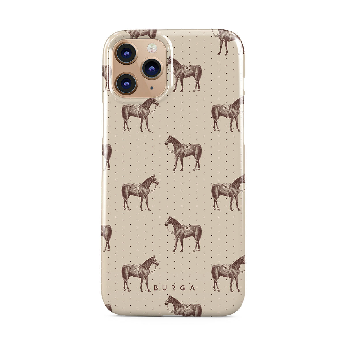 Life might feel like the Wild West sometimes, but your look can still be on point. With beautiful horses on a classic nude background, this iPhone 11 Pro Max phone case design is the one for those who ride free and stylish.