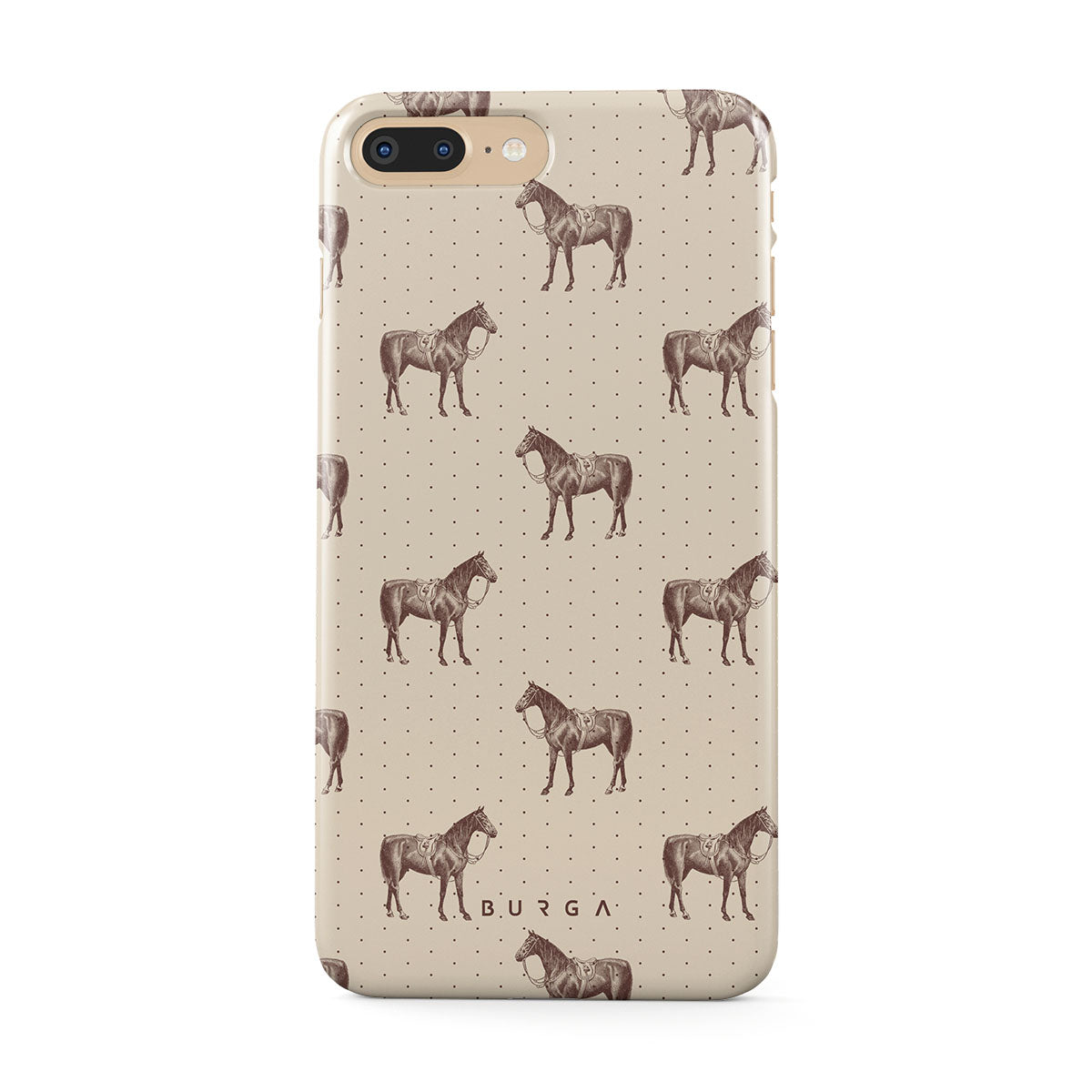 Life might feel like the Wild West sometimes, but your look can still be on point. With beautiful horses on a classic nude background, this iPhone 7 Plus / 8 Plus phone case design is the one for those who ride free and stylish.