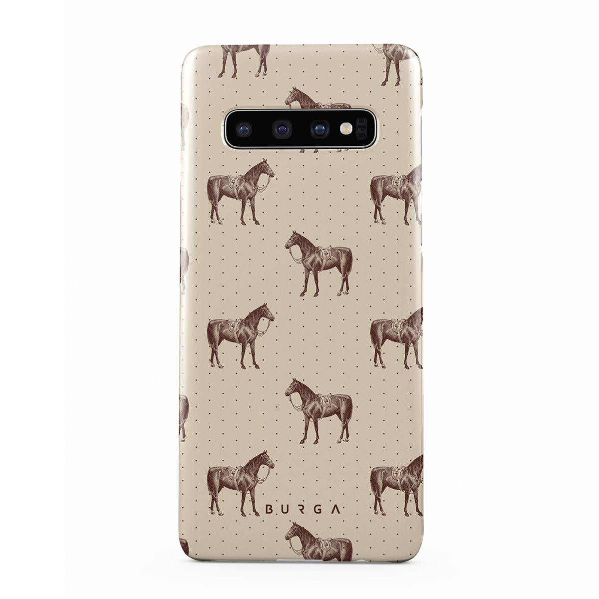 Life might feel like the Wild West sometimes, but your look can still be on point. With beautiful horses on a classic nude background, this Samsung Galaxy S10 Plus phone case design is the one for those who ride free and stylish.