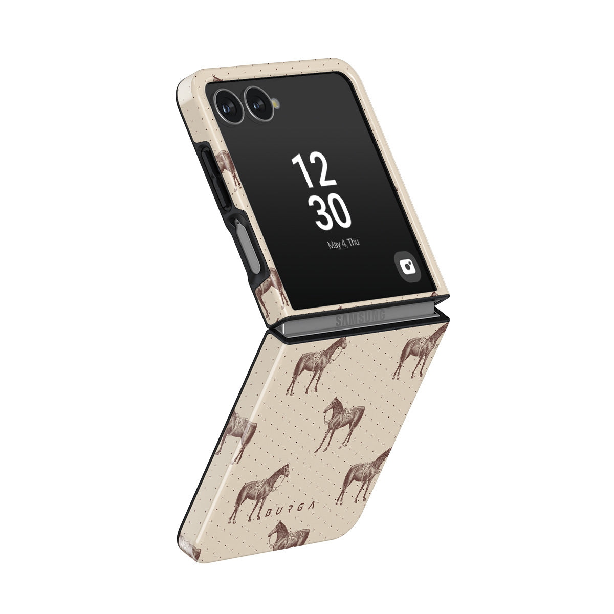 Life might feel like the Wild West sometimes, but your look can still be on point. With beautiful horses on a classic nude background, this Samsung Galaxy Z Flip 7 phone case design is the one for those who ride free and stylish.