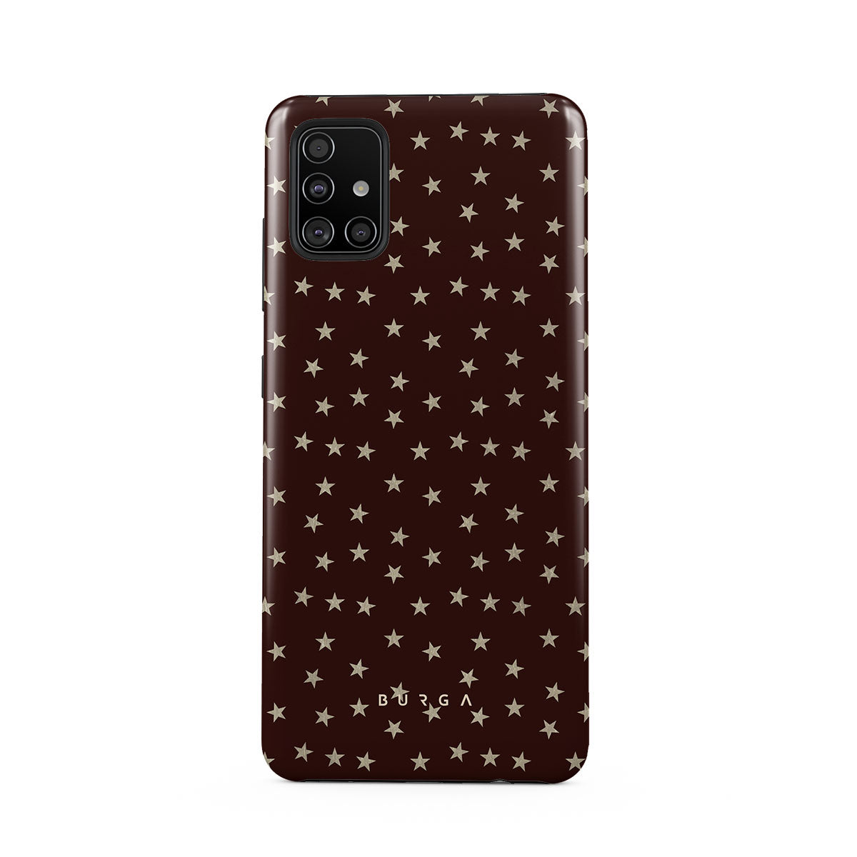 Our Wonderland Samsung Galaxy A51 4G phone case design glistens like a frosty winter night, where the magic of the season lights up the sky. Step into a snowfall of stars with every glance.