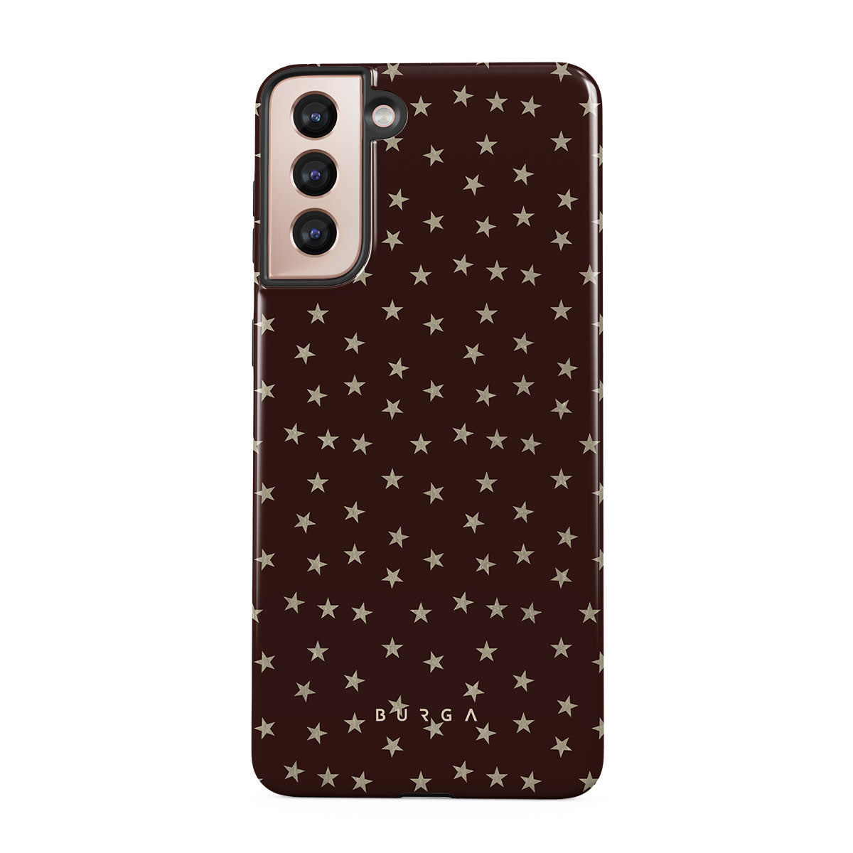 Our Wonderland Samsung Galaxy S21 Plus phone case design glistens like a frosty winter night, where the magic of the season lights up the sky. Step into a snowfall of stars with every glance.