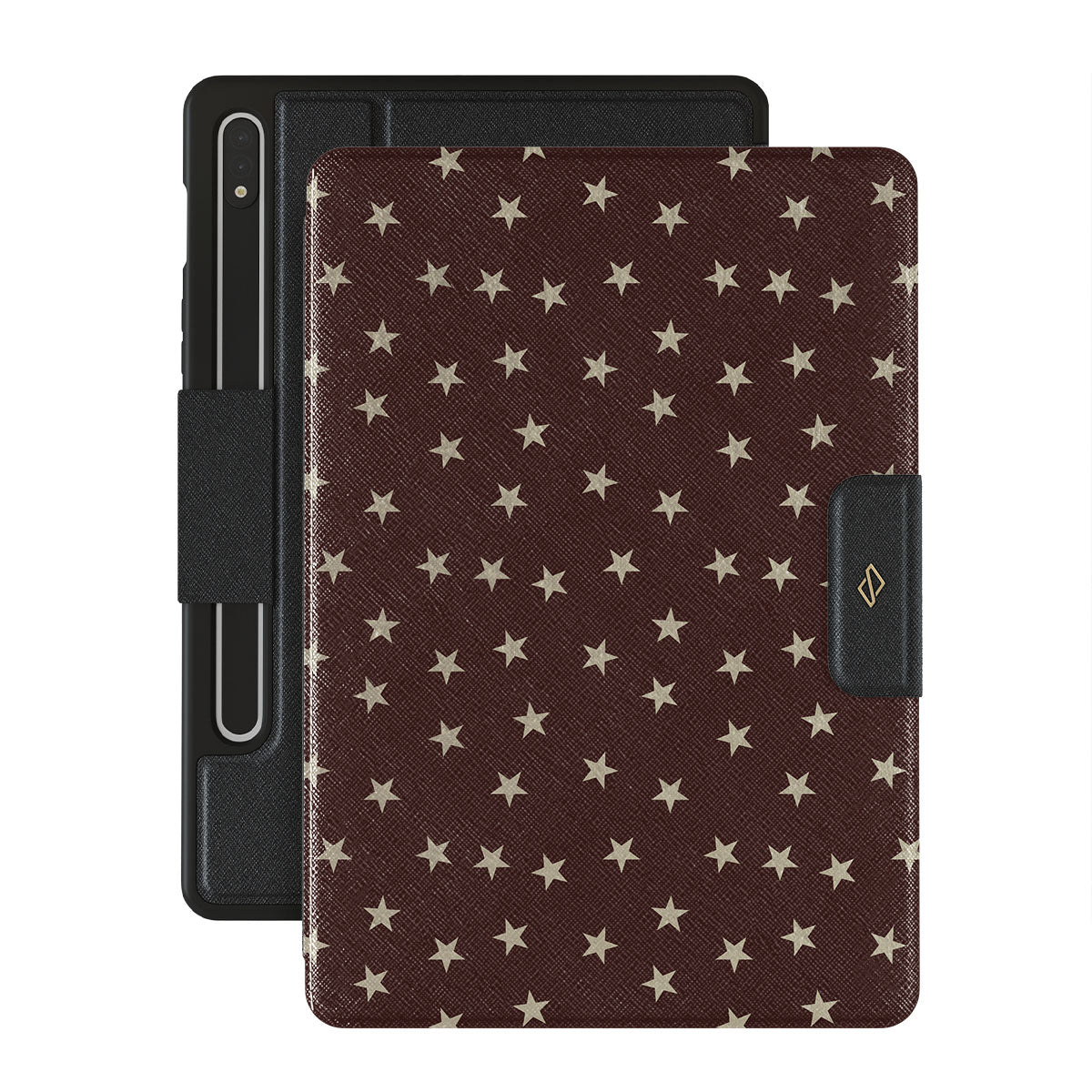 Our Wonderland Samsung Galaxy Tab S9+ folio case design glistens like a frosty winter night, where the magic of the season lights up the sky. Step into a snowfall of stars with every glance.