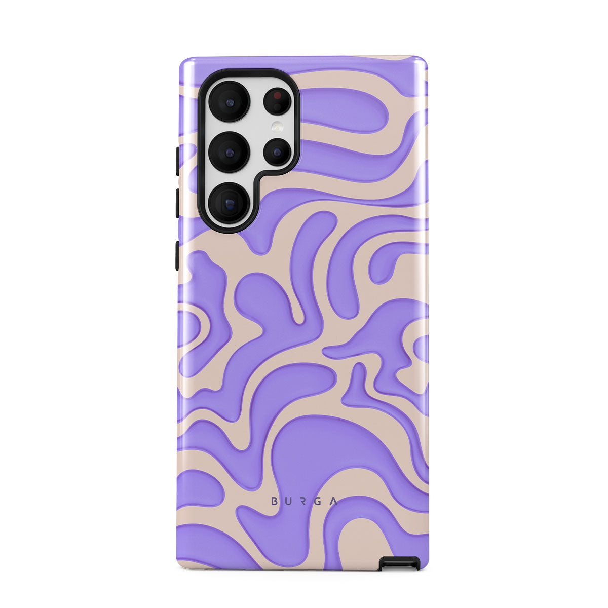 With a blend of retro and contemporary style, the Y2Kool Samsung Galaxy S22 Ultra phone case is the perfect accessory for anyone looking to make a statement. Drawing inspiration from the colorful and vibrant Y2K era, this case features pastel-toned metallic purple swirls that evoke memories of butterfly hair clips, platform shoes, and boy bands.