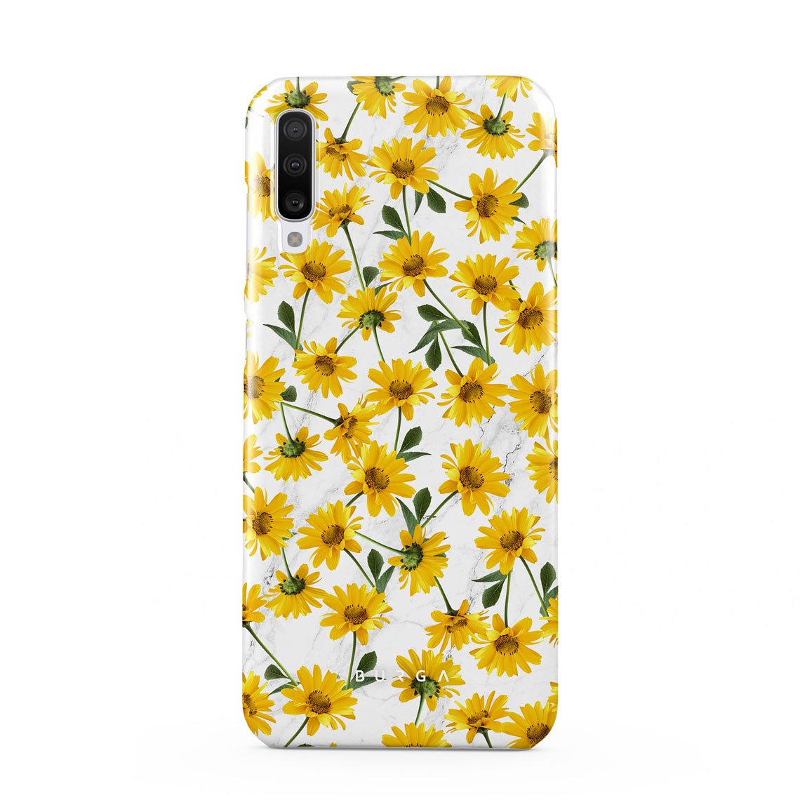 Little suns, little suns all around. Take the light of the summer whenever you go with the pretty pattern of the yellow flowers on your Samsung Galaxy A70 phone case to brighten your week, day, or a minute. A splash of color and heavy-duty protection is a perfect combo for your phone.