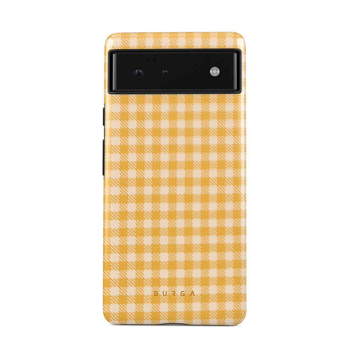Always fashionable and always inviting, the Preppy Vichy fabric returns in our Tuscan Sun Google Pixel 6a phone case. The brightness and warmth of this enchanting yellow plaid design indeed remind us of the always generous Tuscan Sun. You can add a piece of this playful squares pattern with you while keeping your phone out of harm's way!