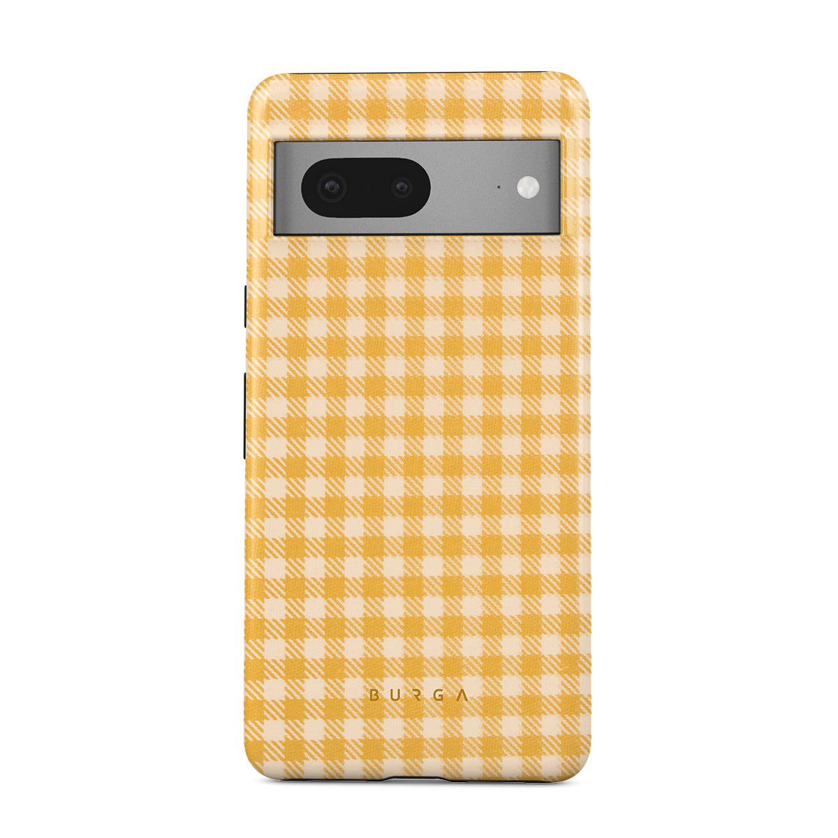 Always fashionable and always inviting, the Preppy Vichy fabric returns in our Tuscan Sun Google Pixel 7 phone case. The brightness and warmth of this enchanting yellow plaid design indeed remind us of the always generous Tuscan Sun. You can add a piece of this playful squares pattern with you while keeping your phone out of harm's way!