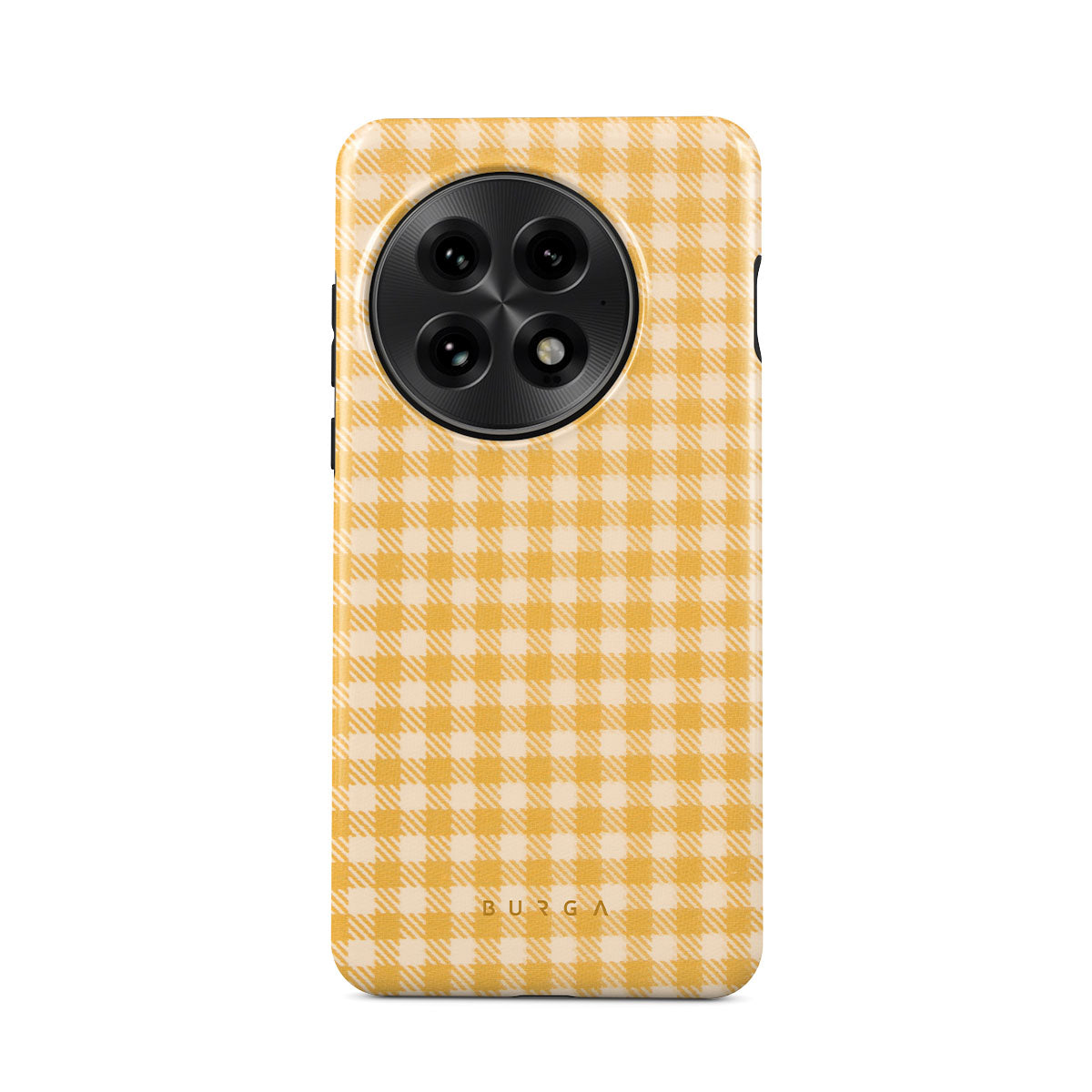 Always fashionable and always inviting, the Preppy Vichy fabric returns in our Tuscan Sun OnePlus 13 phone case. The brightness and warmth of this enchanting yellow plaid design indeed remind us of the always generous Tuscan Sun. You can add a piece of this playful squares pattern with you while keeping your phone out of harm's way!