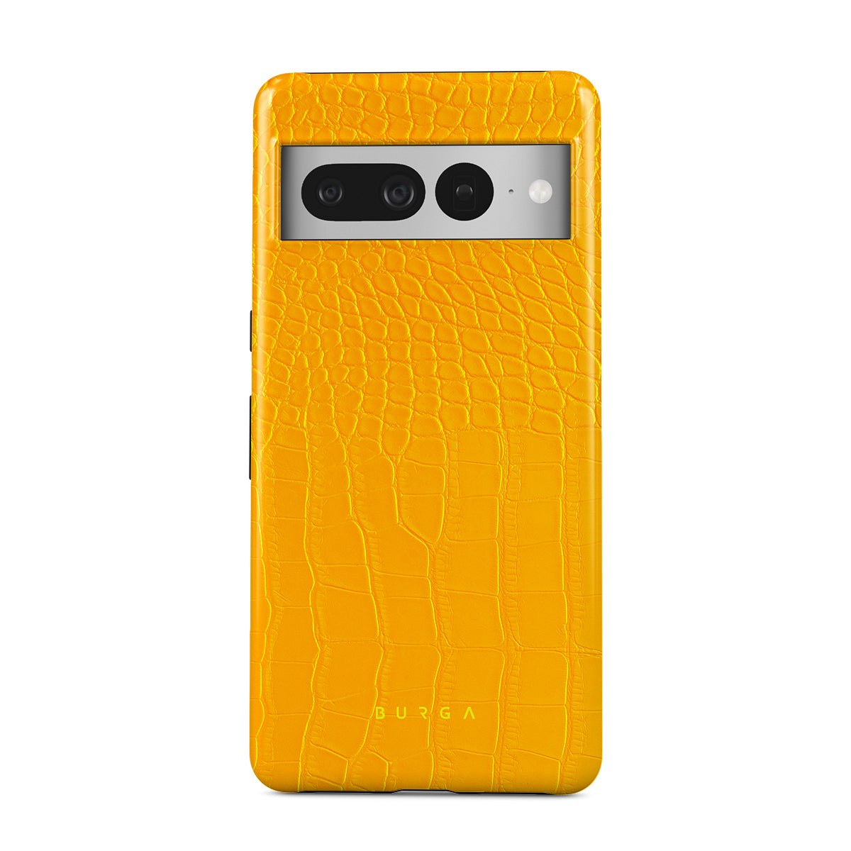Our Canary Yellow Google Pixel 7 Pro phone case features a classic snake design reimagined and showcased in bright yellow. The new take on the dangerous animal print will add confidence and a touch of color to your style while transforming your protective phone case into a fashion accessory.