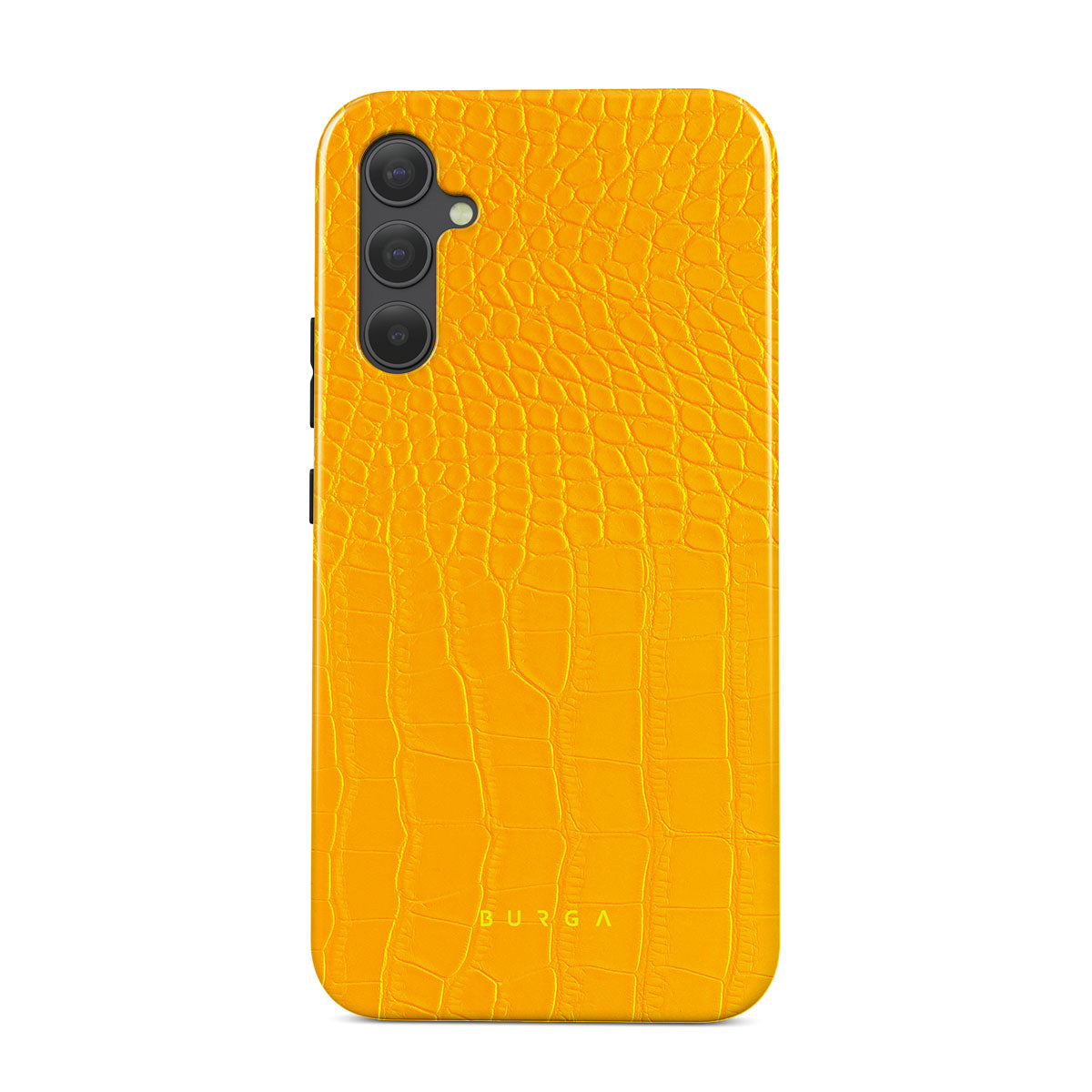 Our Canary Yellow Samsung Galaxy A34 phone case features a classic snake design reimagined and showcased in bright yellow. The new take on the dangerous animal print will add confidence and a touch of color to your style while transforming your protective phone case into a fashion accessory.
