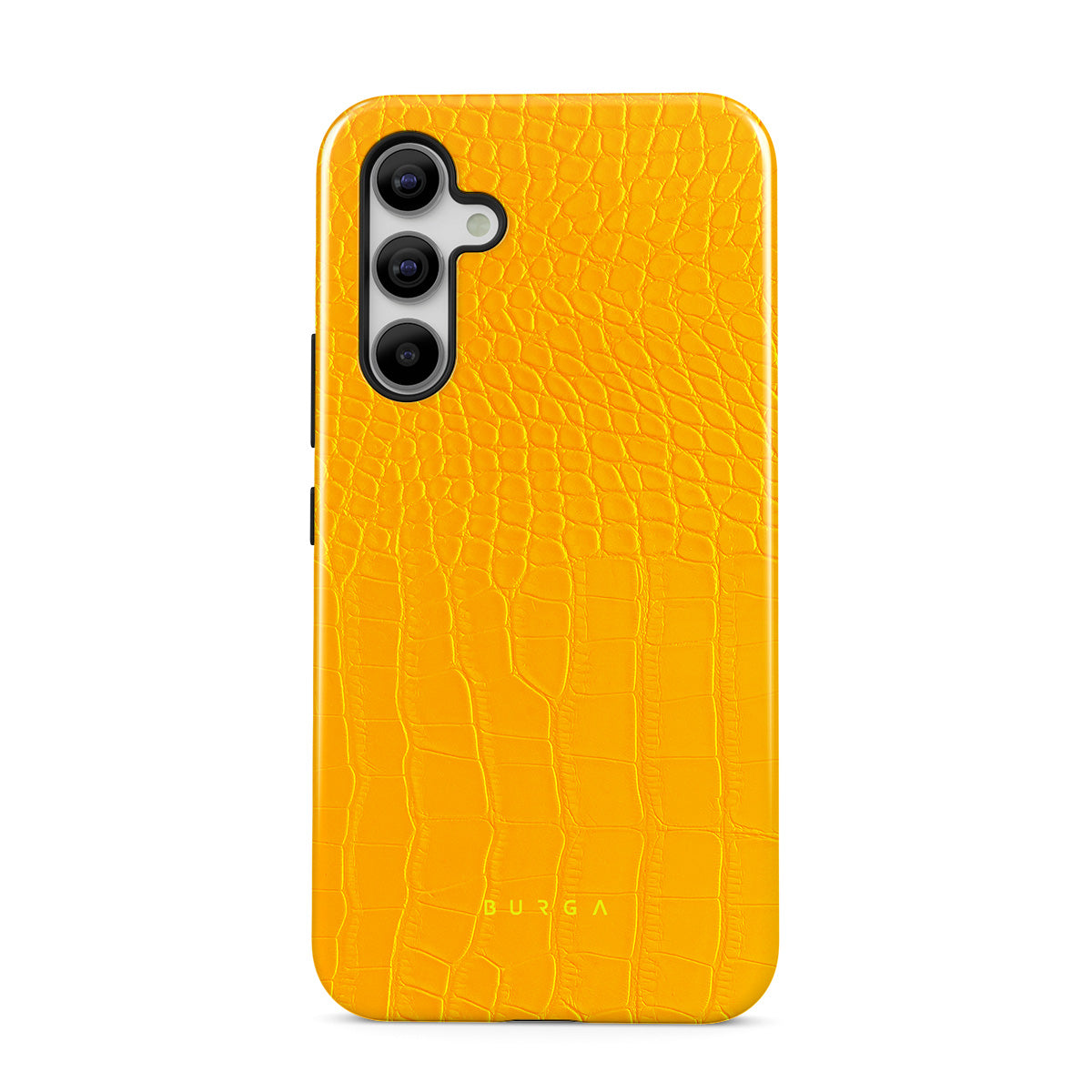Our Canary Yellow Samsung Galaxy A51 phone case features a classic snake design reimagined and showcased in bright yellow. The new take on the dangerous animal print will add confidence and a touch of color to your style while transforming your protective phone case into a fashion accessory.