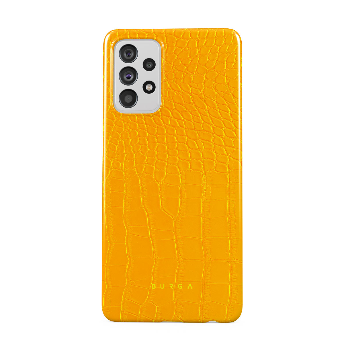 Our Canary Yellow Samsung Galaxy A72 phone case features a classic snake design reimagined and showcased in bright yellow. The new take on the dangerous animal print will add confidence and a touch of color to your style while transforming your protective phone case into a fashion accessory.