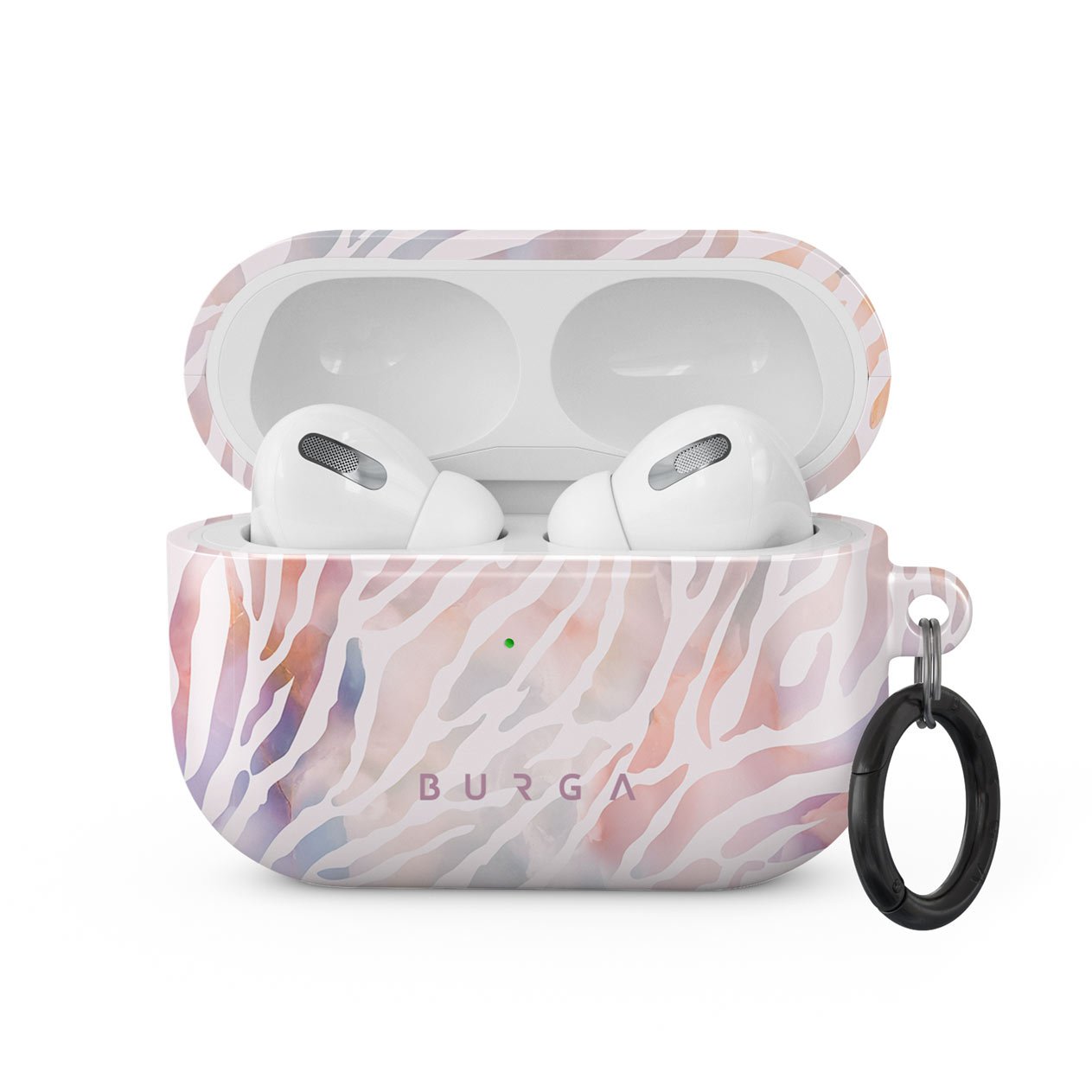 Pastel pink shades and a trendy zebra pattern meets in our Sultry July Apple Airpods Pro case cover. Now you can add a bit of exotic vibe to your style and still easily match the cover to your wardrobe while also fully protecting your AirPods. Our case fits perfectly snug around Apple Airpods Pro . “Like a glove!” one might say. And it won’t disrupt the wireless charging capabilities of the newer model. There’s even an LED light indicator to prove it (don’t worry, wired charging still works, too). When fitted, the BURGA case will protect the delicate Apple Airpods Pro case beneath it from scratches, bumps, and drops while remaining scratch-free itself. Our signature design pattern prints are High Quality, and will never peel or fade away- thanks to our unique printing technology. And finally, a handy carabiner is there to make your life easier and more convenient: just snap it around your keys or belt loop and tackle the day head-on. Your music is right there by your side when you need it.