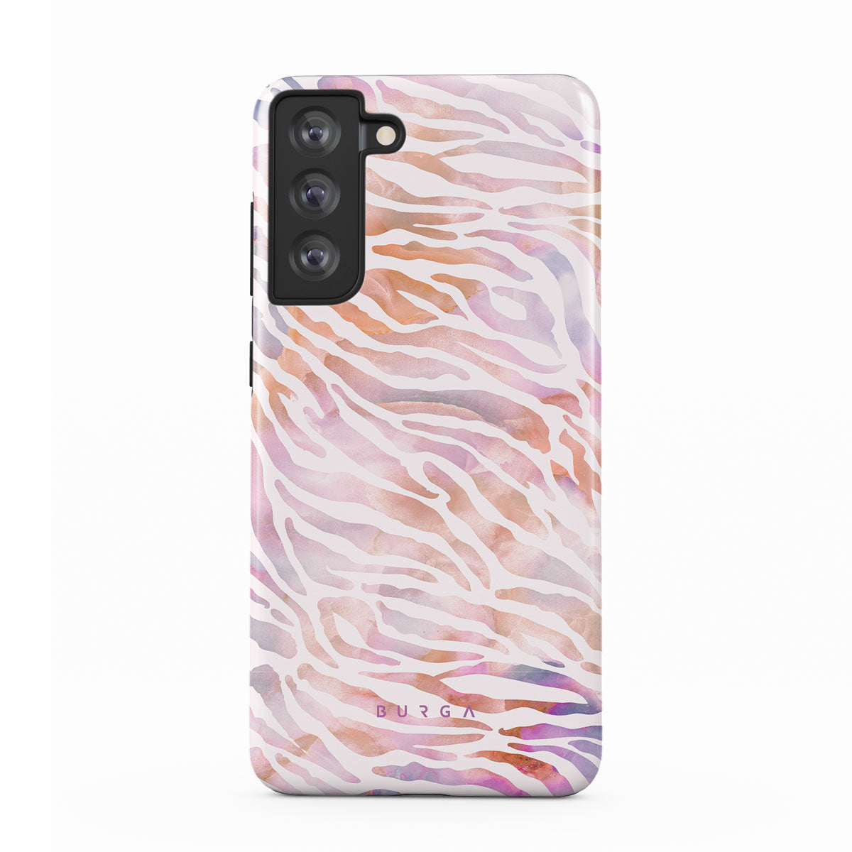 Sultry July Samsung Galaxy S21 FE phone case combines an exotic zebra pattern with the softest shades of pink. The Zebra pattern adds a touch of energy, while pinks will emphasize a softer side. This trendy phone case will keep your cellphone safe and sound from any falls or scratches.