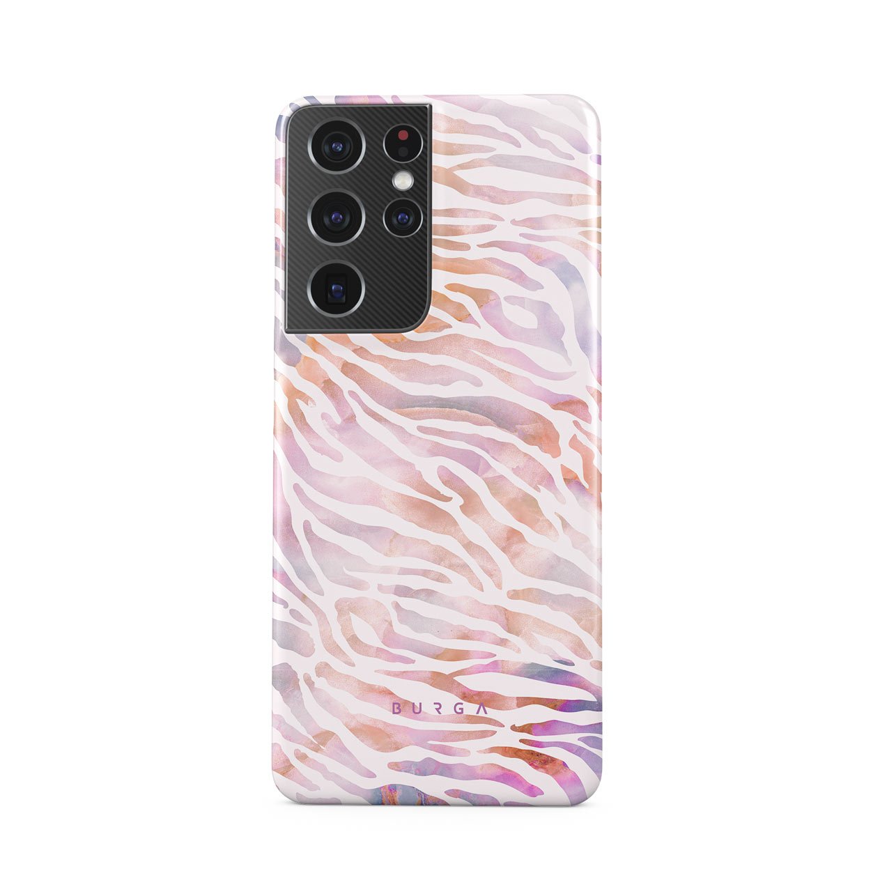 Sultry July Samsung Galaxy S21 Ultra phone case combines an exotic zebra pattern with the softest shades of pink. The Zebra pattern adds a touch of energy, while pinks will emphasize a softer side. This trendy phone case will keep your cellphone safe and sound from any falls or scratches.