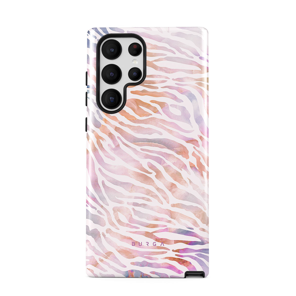 Sultry July Samsung Galaxy S22 Ultra phone case combines an exotic zebra pattern with the softest shades of pink. The Zebra pattern adds a touch of energy, while pinks will emphasize a softer side. This trendy phone case will keep your cellphone safe and sound from any falls or scratches.