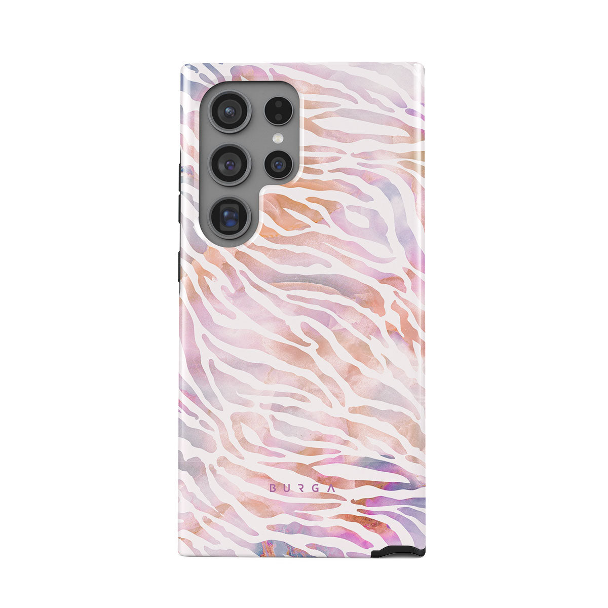 Sultry July Samsung Galaxy S24 Ultra phone case combines an exotic zebra pattern with the softest shades of pink. The Zebra pattern adds a touch of energy, while pinks will emphasize a softer side. This trendy phone case will keep your cellphone safe and sound from any falls or scratches.