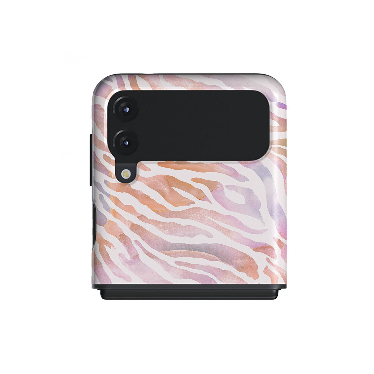 Sultry July Samsung Galaxy Z Flip 3 phone case combines an exotic zebra pattern with the softest shades of pink. The Zebra pattern adds a touch of energy, while pinks will emphasize a softer side. This trendy phone case will keep your cellphone safe and sound from any falls or scratches.
