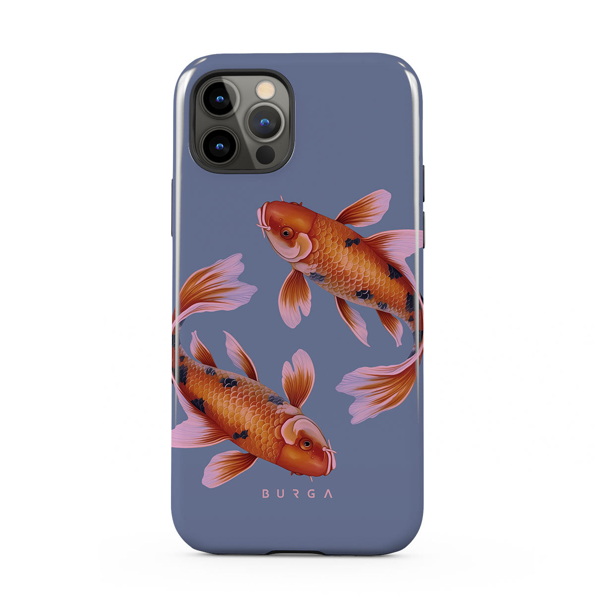 In the embrace of serene blue, the golden koi swirl, a symbol of life's fluid nature and the grace of going with the flow. Their dance is a serene meditation on the currents of destiny and the elegance of adapting with purpose. Discover our Zen iPhone 12 Pro phone case design.