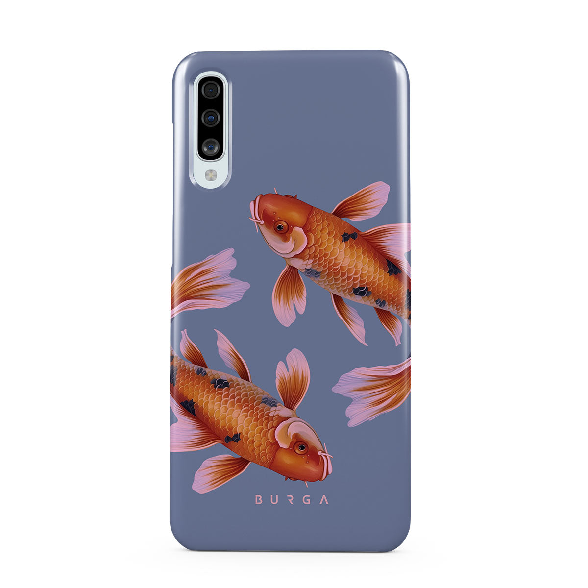 In the embrace of serene blue, the golden koi swirl, a symbol of life's fluid nature and the grace of going with the flow. Their dance is a serene meditation on the currents of destiny and the elegance of adapting with purpose. Discover our Zen Samsung Galaxy A50 phone case design.