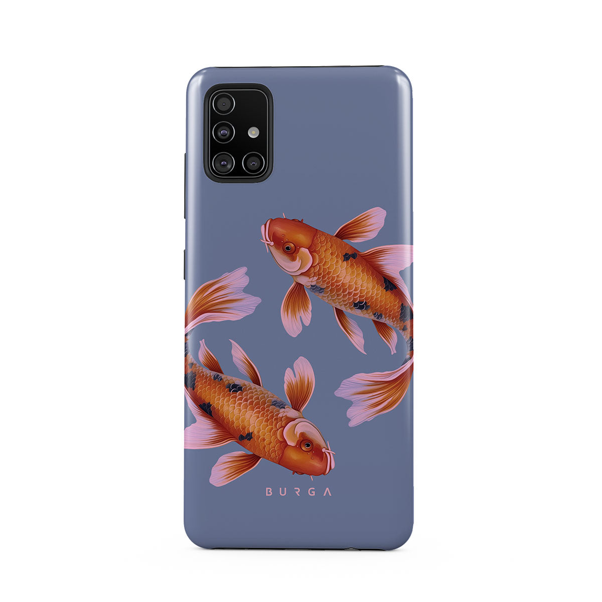 In the embrace of serene blue, the golden koi swirl, a symbol of life's fluid nature and the grace of going with the flow. Their dance is a serene meditation on the currents of destiny and the elegance of adapting with purpose. Discover our Zen Samsung Galaxy A51 4G phone case design.