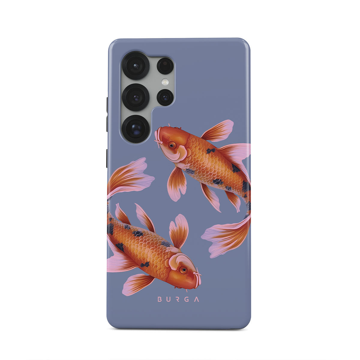 In the embrace of serene blue, the golden koi swirl, a symbol of life's fluid nature and the grace of going with the flow. Their dance is a serene meditation on the currents of destiny and the elegance of adapting with purpose. Discover our Zen Samsung Galaxy S25 Ultra phone case design.