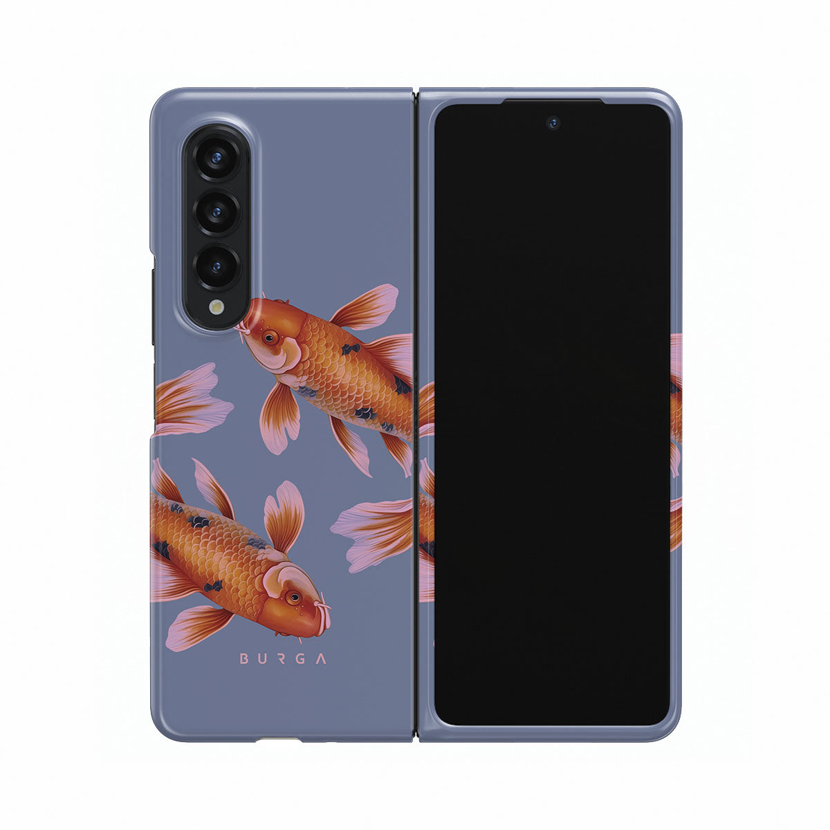 In the embrace of serene blue, the golden koi swirl, a symbol of life's fluid nature and the grace of going with the flow. Their dance is a serene meditation on the currents of destiny and the elegance of adapting with purpose. Discover our Zen Samsung Galaxy Z Fold 3 phone case design.